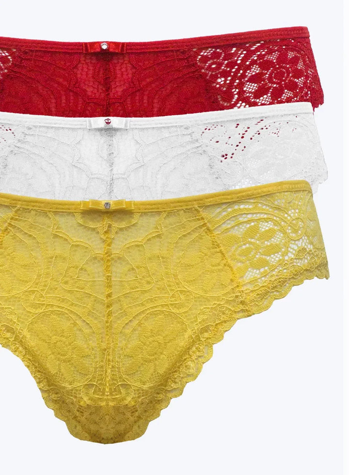 O Kit de Calcinhas Florescer traz toda a delicadeza da Extasis em um conjunto de três peças em renda, desenvolvido para valorizar conforto e feminilidade. Com modelagem slim, as calcinhas se ajustam perfeitamente ao corpo, garantindo bem-estar ao longo do dia. O kit conta com três cores exclusivas — amarelo amarillo, vermelho beijo e branco — que combinam romantismo, ousadia e versatilidade. Além disso, acompanha caixinha especial, tornando-se ideal para presentear alguém querido ou para você mesma celebrar o seu momento de florescer.